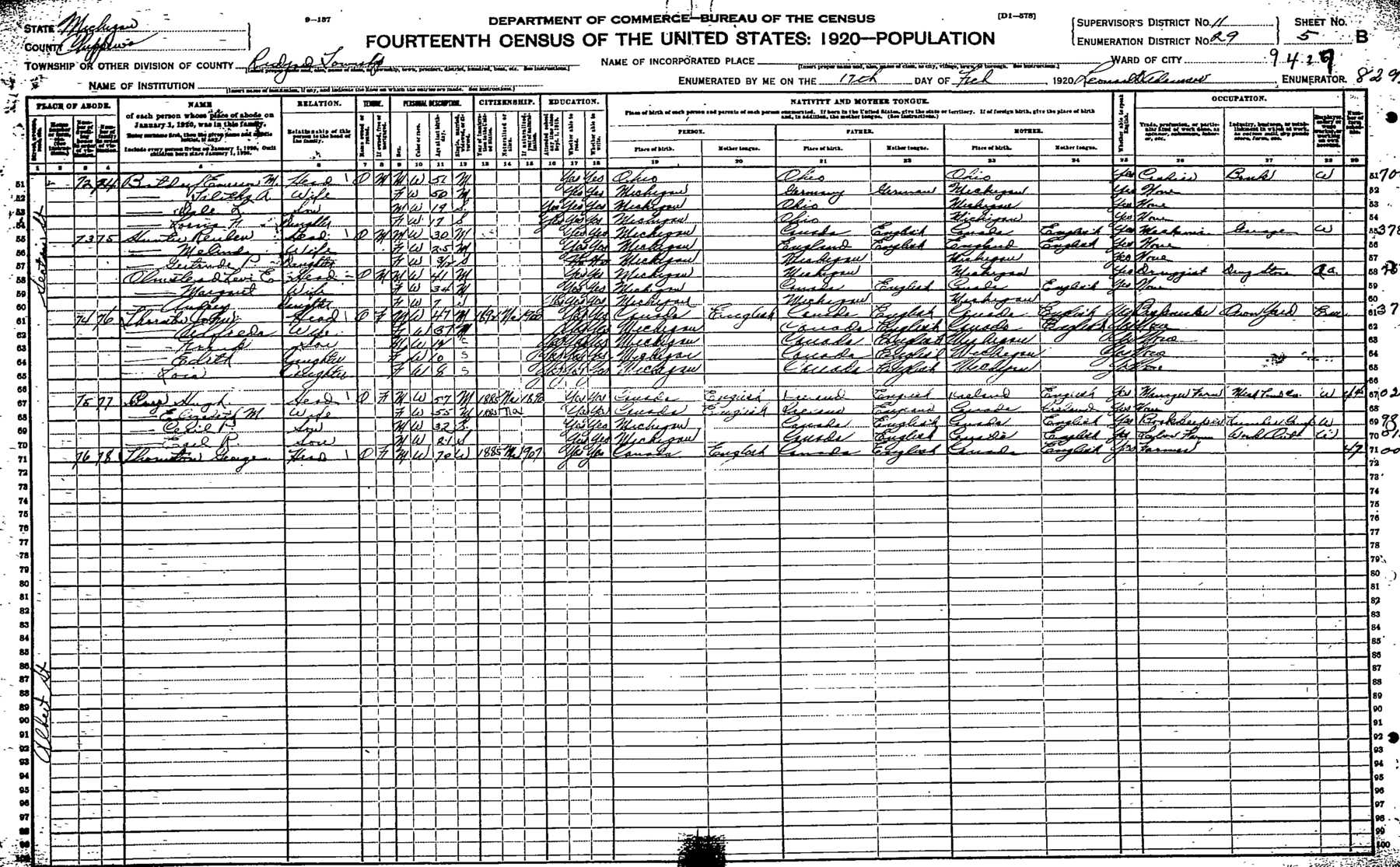7. Melinda appeared in the household of Reuben HUNTER in the 1920 United States census on 17 February 1920 in Rudyard, Chippewa, Michigan, United States. 1920_MI_Chippewa_11_29_05b 8. She was an occupant at the residence of Reuben HUNTER on 17 February 1920 in Rudyard, Chippewa, Michigan, United States: Section Street. This event was shared from Reuben HUNTER who also shared it with Melinda PENNINGTON (1895-1990) and Pauline Gertrude HUNTER (1919-2014).
