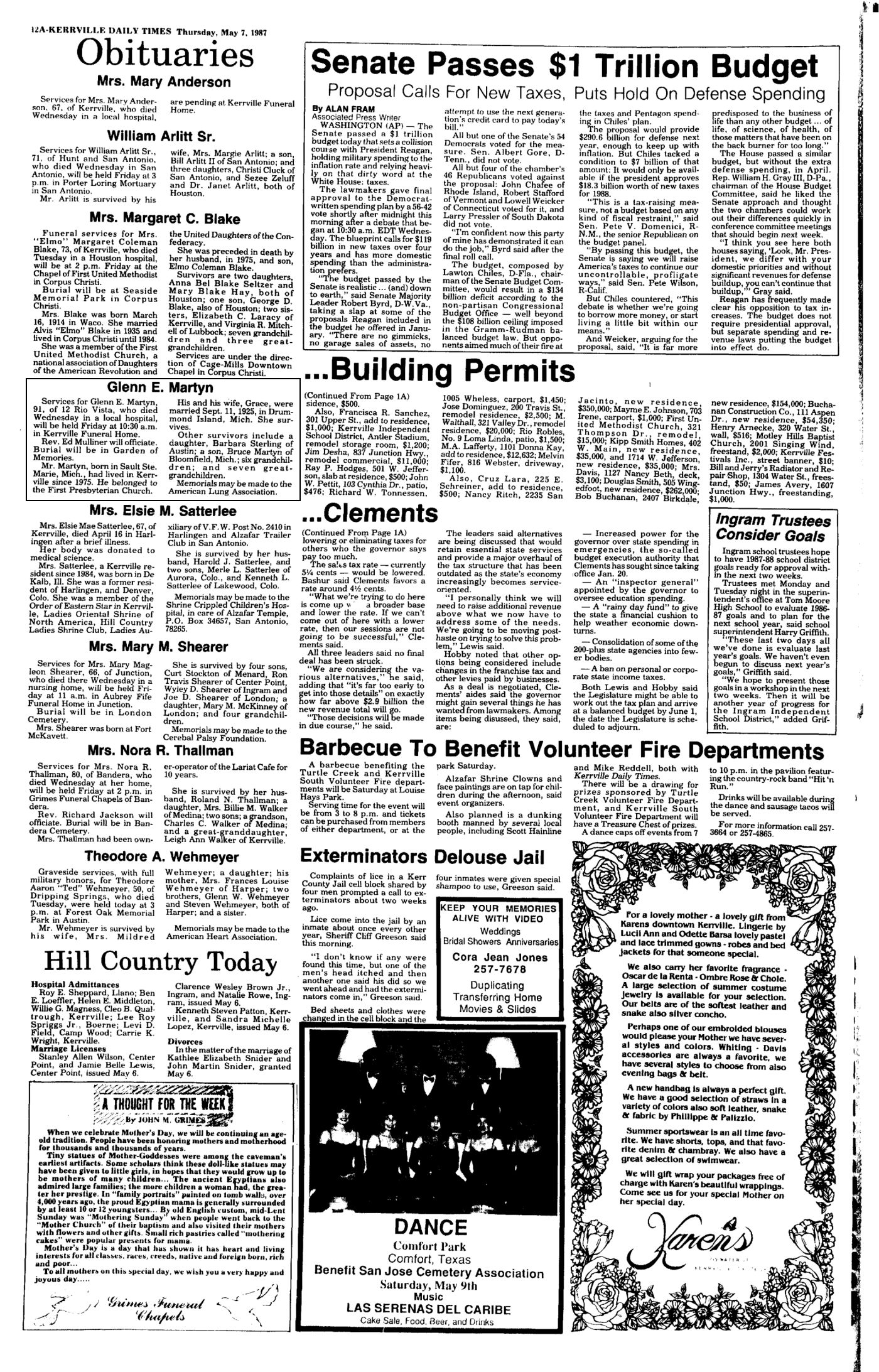 25. His obituary was published in the Kerrville Daily Times on 7 May 1987 in Kerrville, Kerr, Texas, United States.