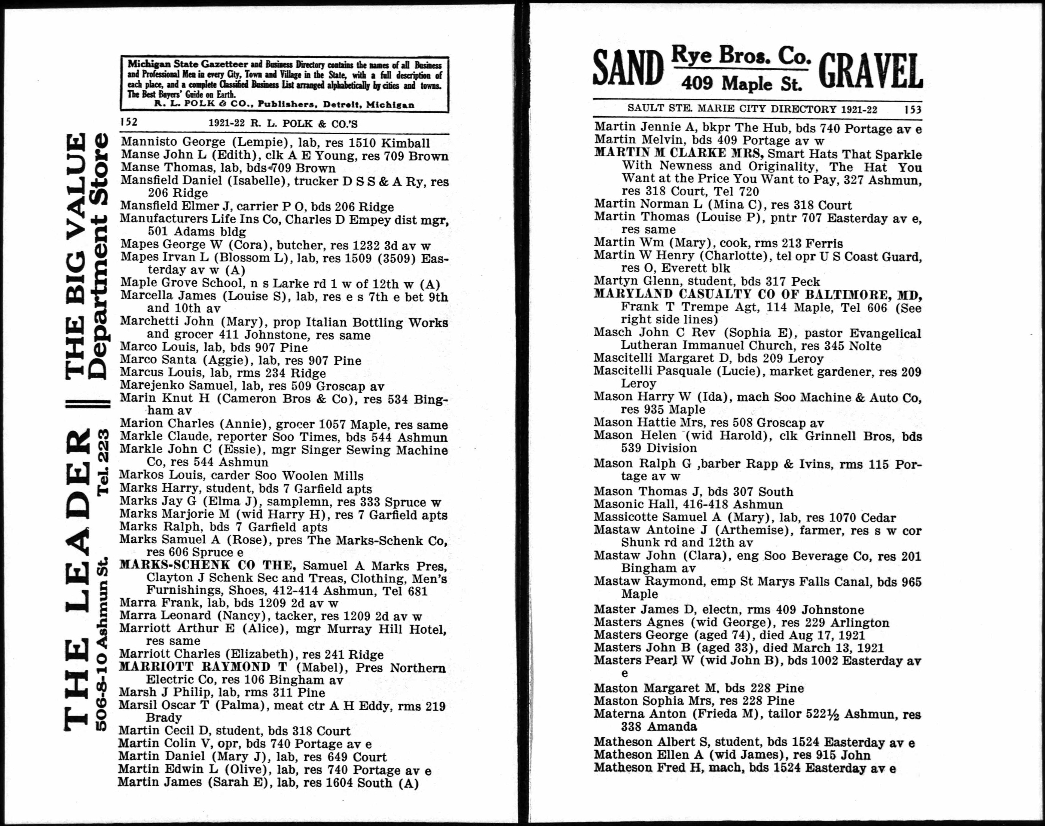 9. Glenn Edmund Martyn appeared in Sault Ste. Marie, Chippewa, Michigan, United States City Directory for 1921