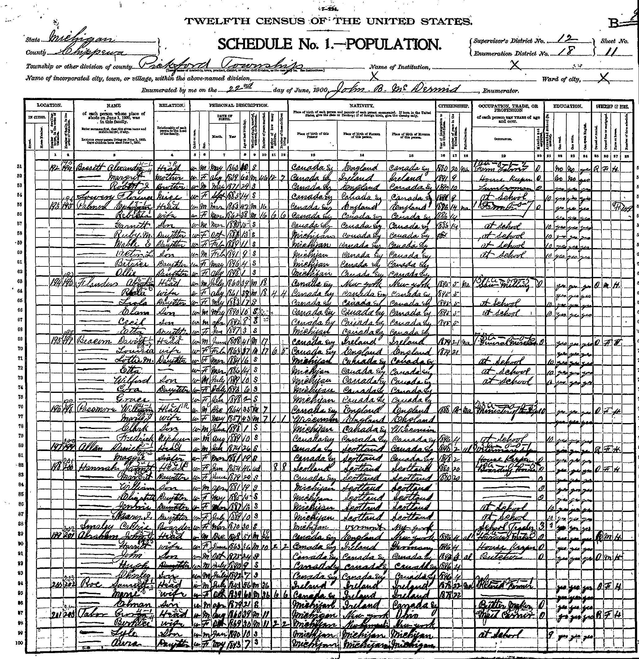 3. He appeared on the 1900 United States census on 22 June 1900 in Pickford, Chippewa, Michigan, United States. 4. He worked as a Retired farmer on 22 June 1900 in Pickford, Chippewa, Michigan, United States. 565 Samuel married Maria WYNN about 1863 in , , Ontario, Canada.565 (Maria WYNN was born in October 1839 in Goderich, Huron, Ontario, Canada,565 died on 20 September 1917 in Pickford, Chippewa, Michigan, United States and was buried on 25 September 1917 in Pickford, Chippewa, Michigan, United States.) |