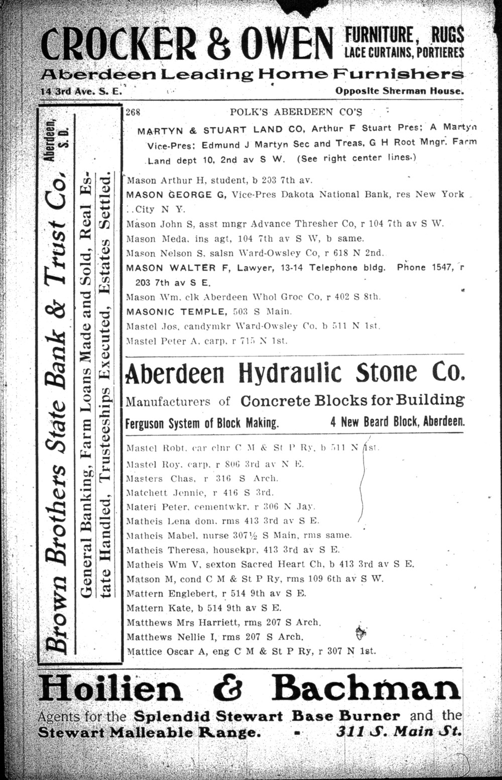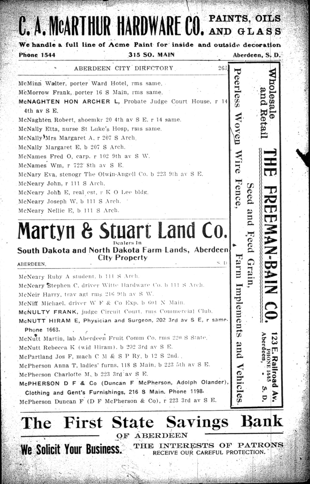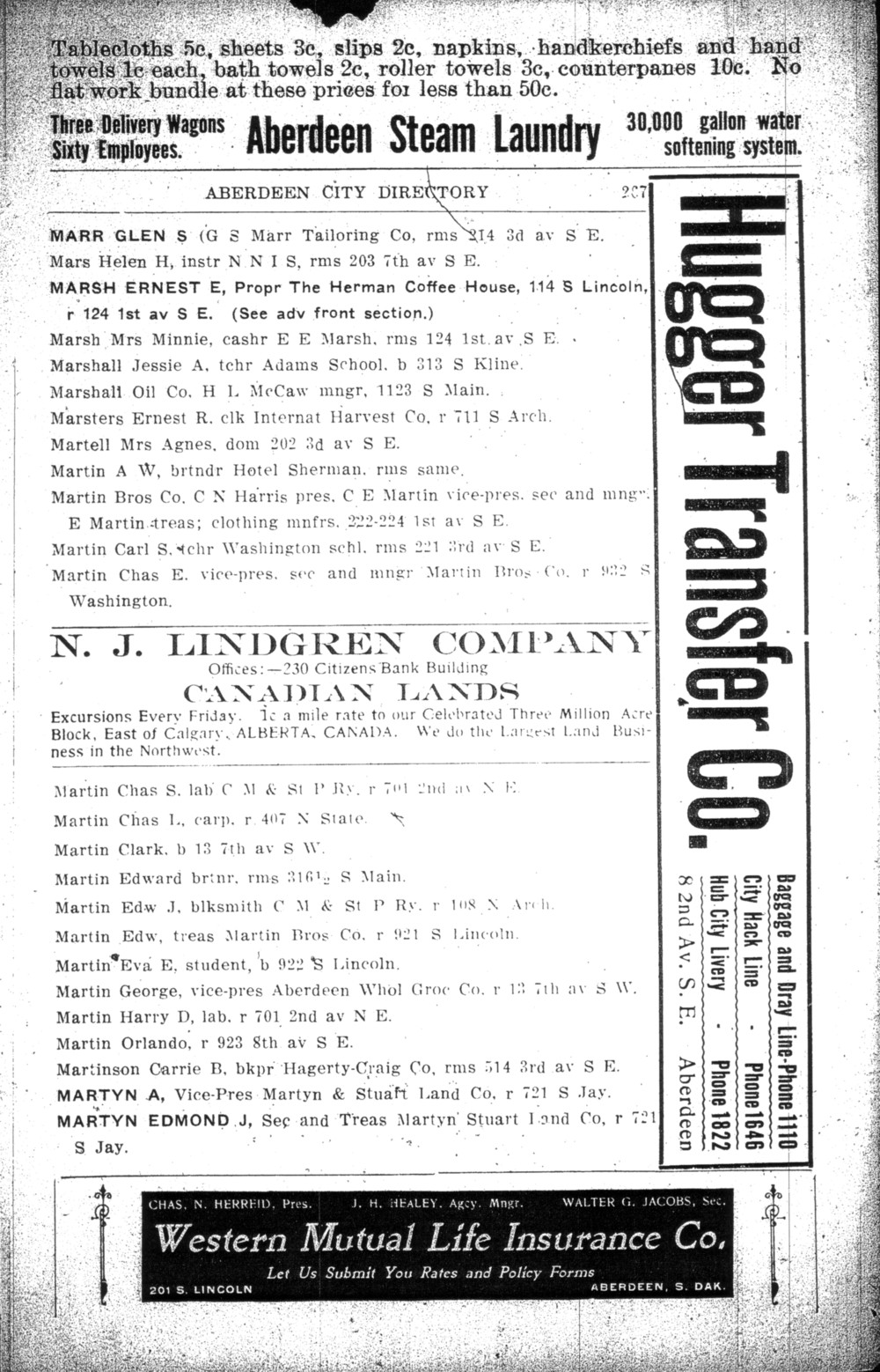 29. Edmund Jonathan Martyn appeared in Aberdeen, Brown, South Dakota, United States City Directory for 1910 Advertisement for Martyn & Stuart Land Co.