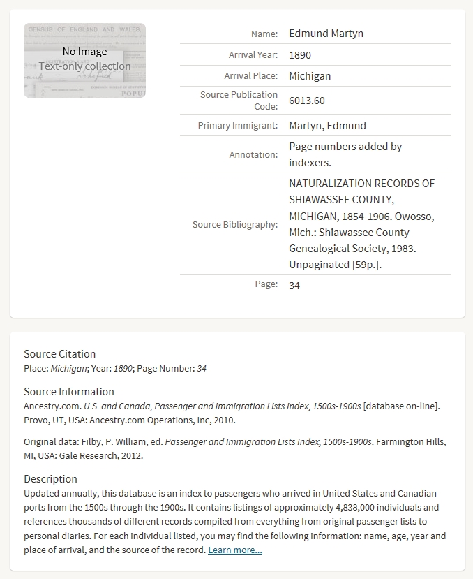 4. Edmund appeared in the household of John Piper MARTYN in the 1871 Canada census on 2 April 1871 in Yarmouth, Elgin, Ontario, Canada. 104 104