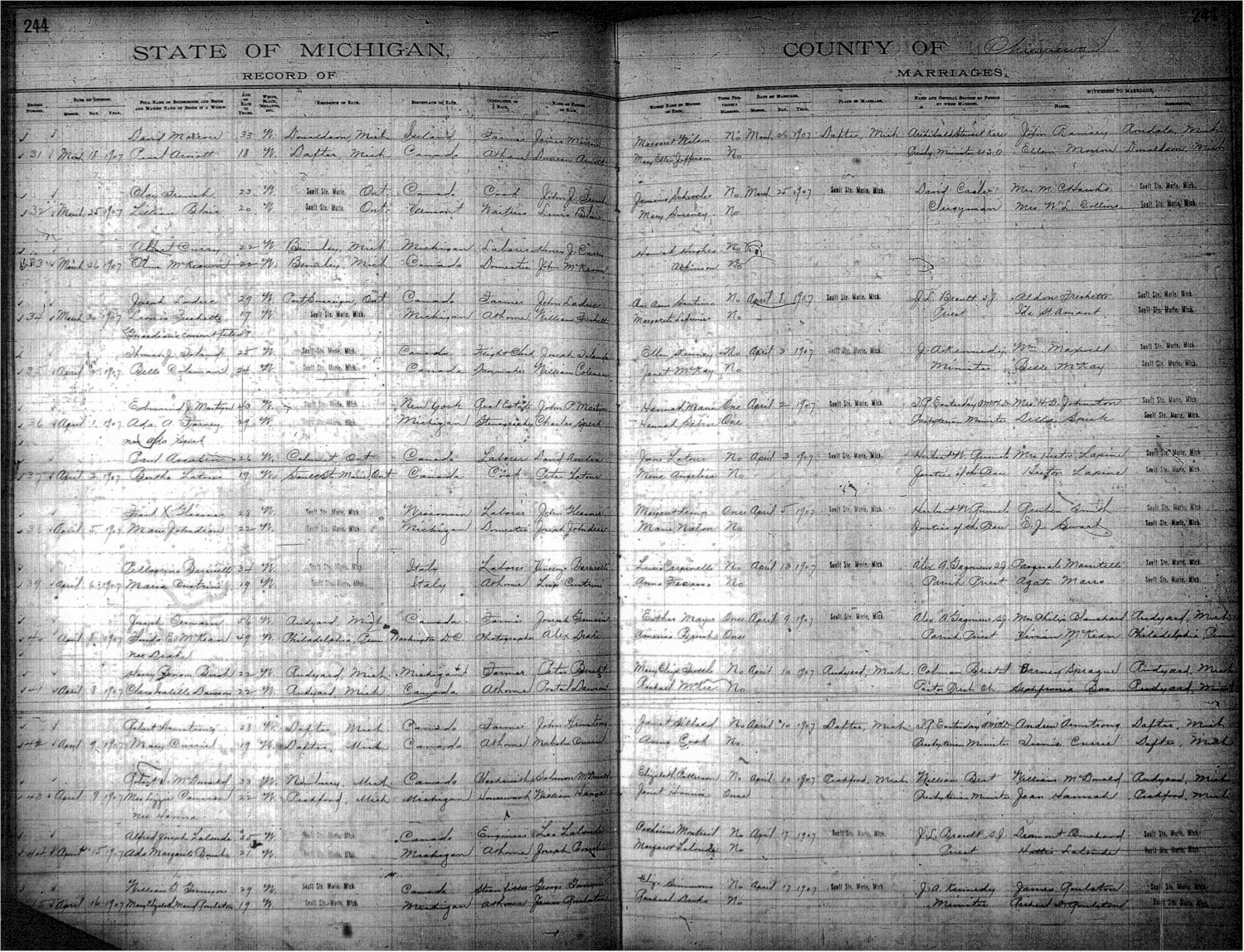 1. Marriage: Edmund Martyn and Ada Speck, on 2 April 1907, in Sault Ste. Marie, Chippewa, Michigan, United States.