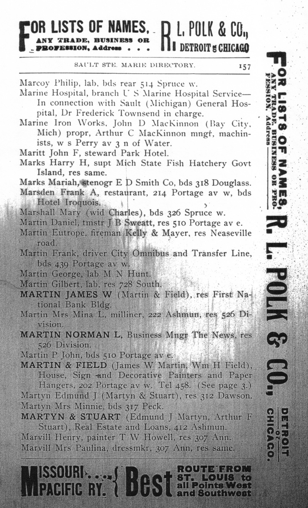 22. Edmund Jonathan Martyn appeared in Sault Ste. Marie, Chippewa, Michigan, United States City Directory for 1901 page 157.