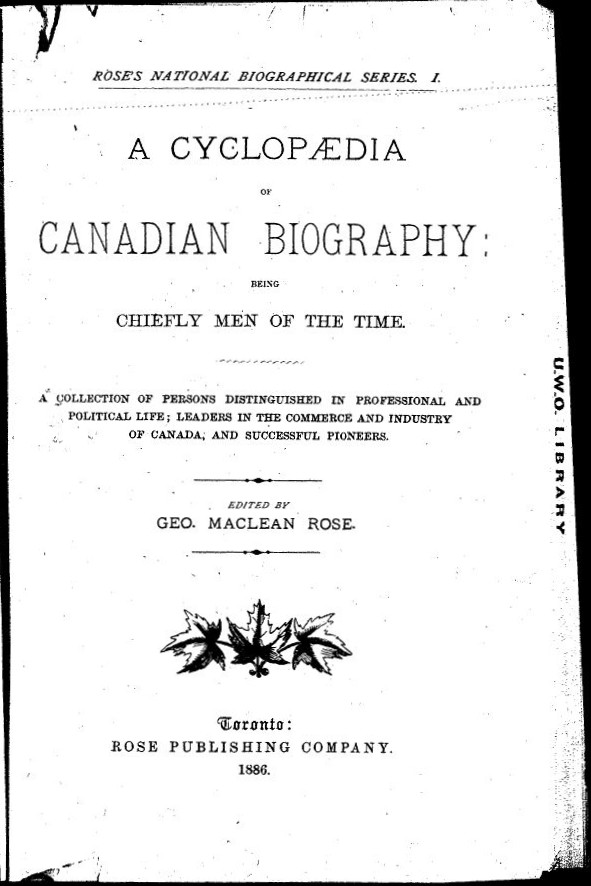 From "A Cyclopæedia of Canadian biography: being chiefly men of the time : a collection of persons distinguished in professional and political life : leaders in the commerce and industry of Canada, and successful pioneers"
