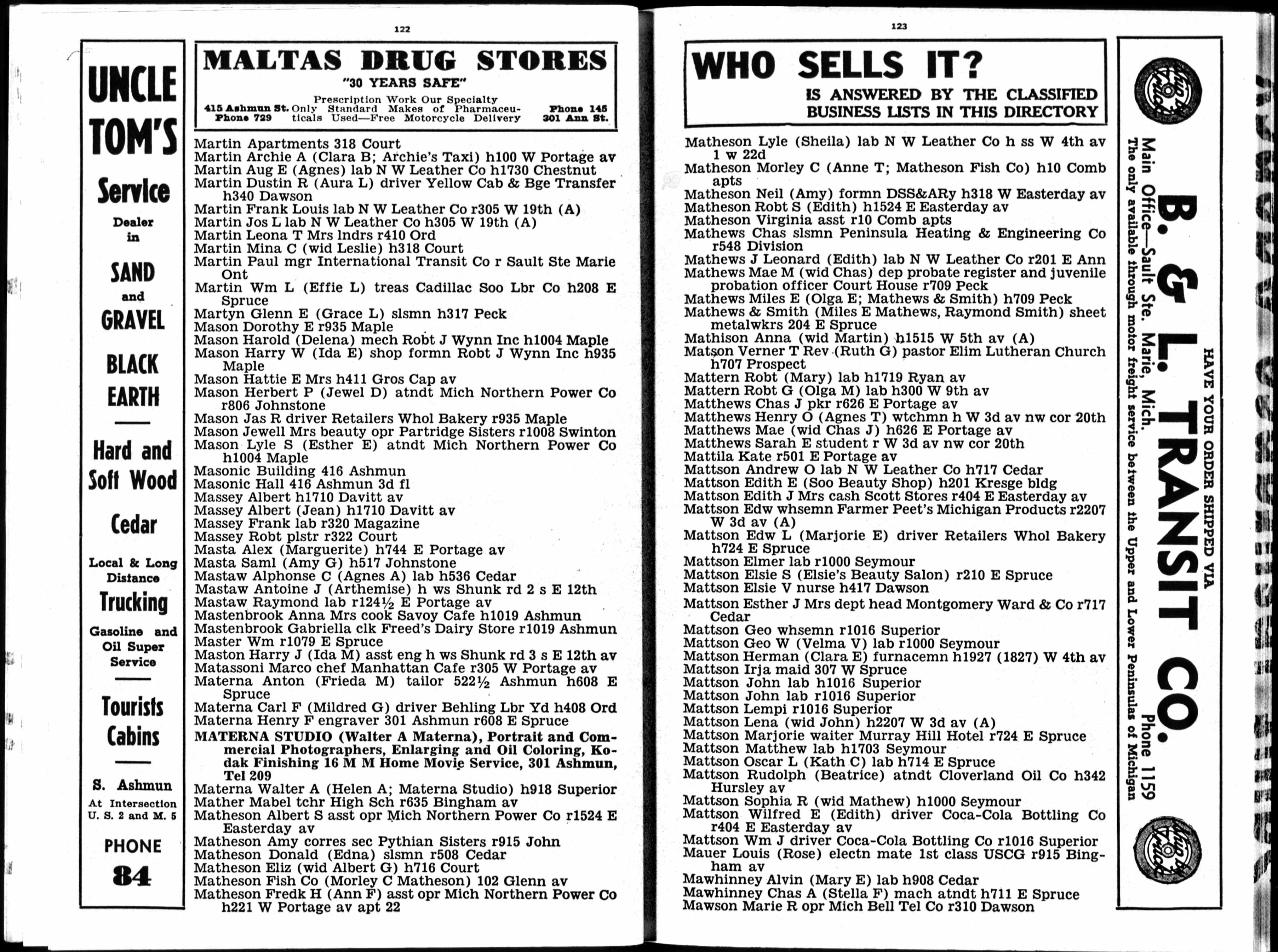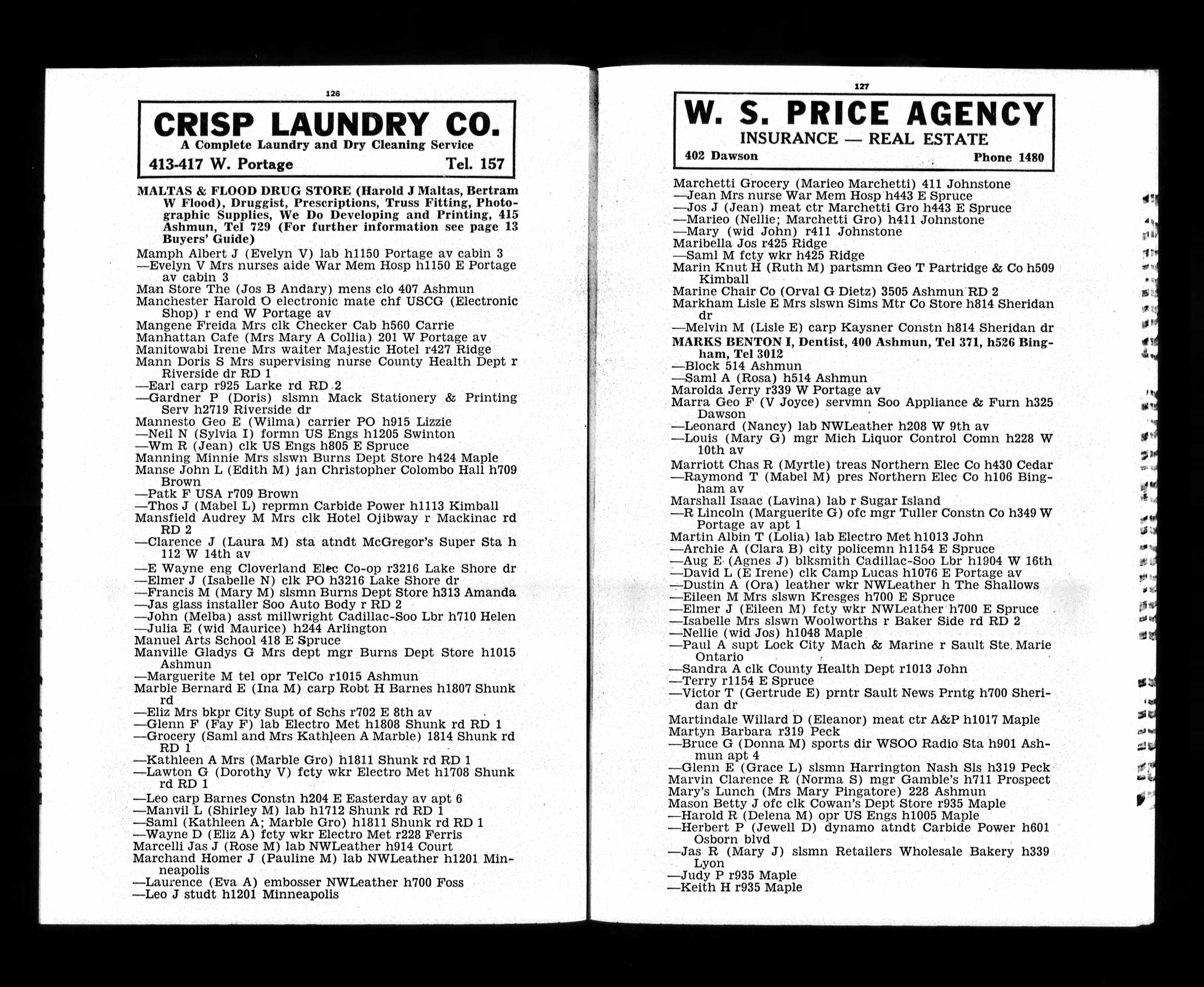 17. Grace was a witness to the city directory of Bruce Glenn MARTYN 1952 Sault Ste. Marie, Chippewa, Michigan, United States: Polk's Sault Ste. Marie City Directory, page 127. 18. She was an occupant at the residence of Glenn Edmund MARTYN on 8 April 1950 in Sault Ste. Marie, Chippewa, Michigan, United States: 319 Peck Street. 19. Grace was an occupant at the residence of Glenn Edmund MARTYN in 1952 in Sault Ste. Marie, Chippewa, Michigan, United States: 319 Peck Street. This event was shared from Glenn Edmund MARTYN who also shared it with Grace L. GRIEVE (1895-1990).