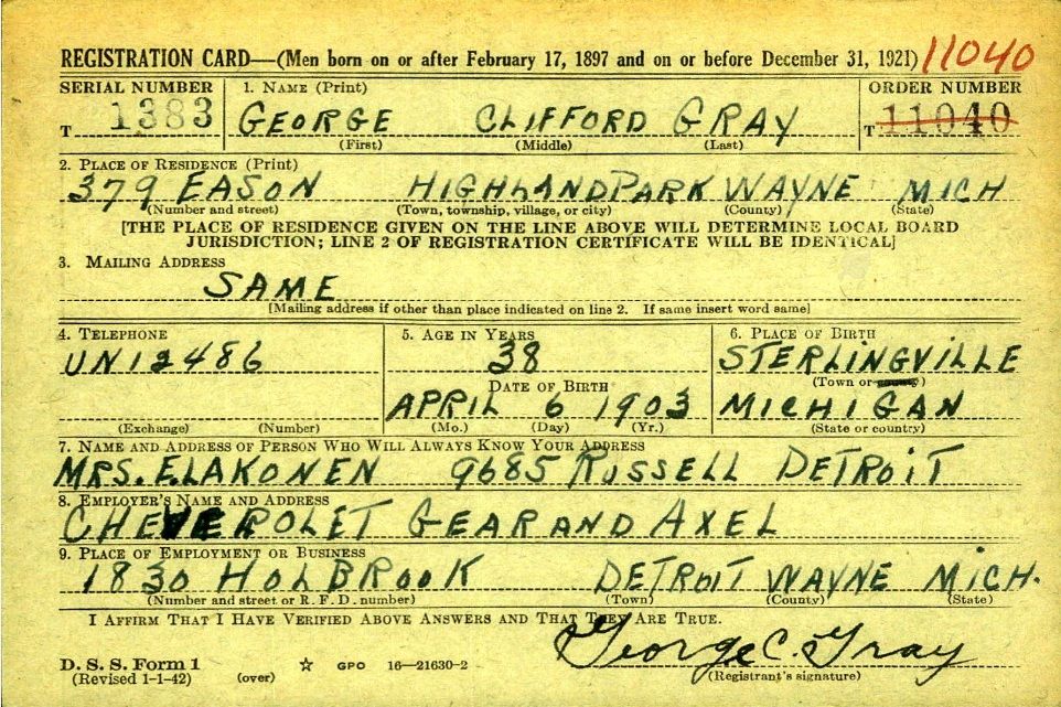 1. He served in the military in Detroit, Wayne, Michigan, United States: Draft Registration.
