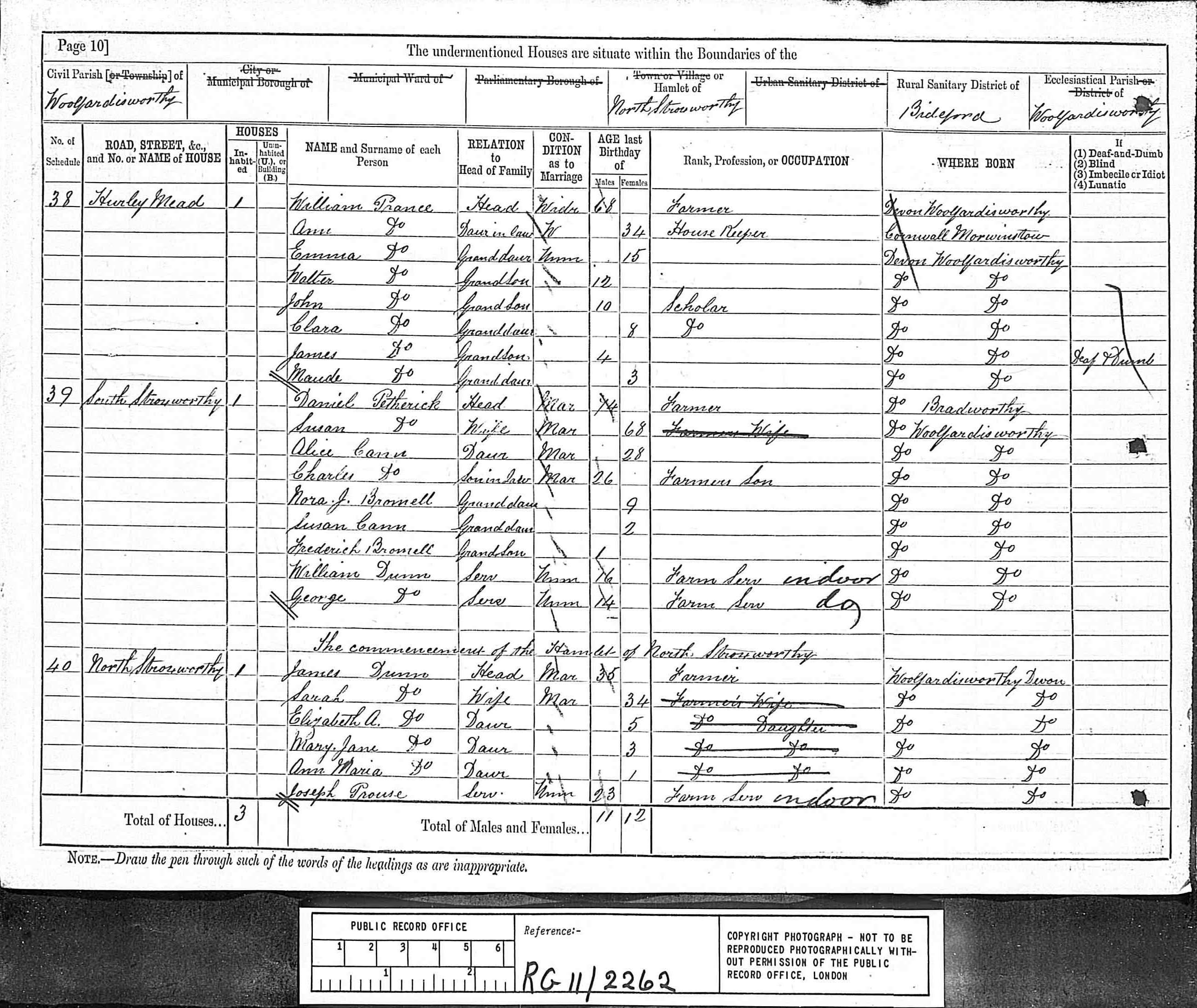 6. She appeared in the household of James DUNN in the 1901 British census on 31 March 1901 in Woolfardisworthy, , Devonshire, England. 7. Mary was an occupant at the residence of James DUNN on 31 March 1901 in Woolfardisworthy, , Devonshire, England: Lane Barton. This event was shared from James DUNN who also shared it with Ann GRIGG (1823-After 1901), Anna Maria DUNN (1880-), James Heywood DUNN (Abt 1889-), John Thomas DUNN (Abt 1875-), Mary Jane DUNN (1878-1925), Sarah HEYWOOD (Abt 1847-), and William Henry DUNN (Abt 1887-).