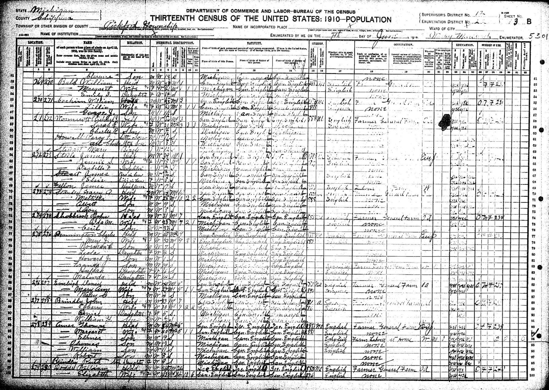 10. Mary appeared in the household of Charles Albert PENNINGTON in the 1910 United States census on 7 June 1910 in Pickford, Chippewa, Michigan, United States. 11. She was an occupant at the residence of Charles Albert PENNINGTON on 7 June 1910 in Pickford, Chippewa, Michigan, United States. 77 77 This event was shared from Charles Albert PENNINGTON who also shared it with Francis PENNINGTON (1891-1948), Howard James PENNINGTON (1908-1992), Huldah PENNINGTON (1893-1970), Leola PENNINGTON (1905-1980), Mary Jane DUNN (1878-1925), Melinda PENNINGTON (1895-1990), and Norman C. PENNINGTON (1908-1975).