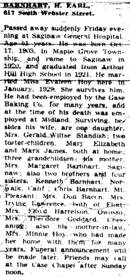 2. His obituary was published in the Saginaw News, page 10 on 1 October 1955 in Saginaw, Saginaw, Michigan, United States.