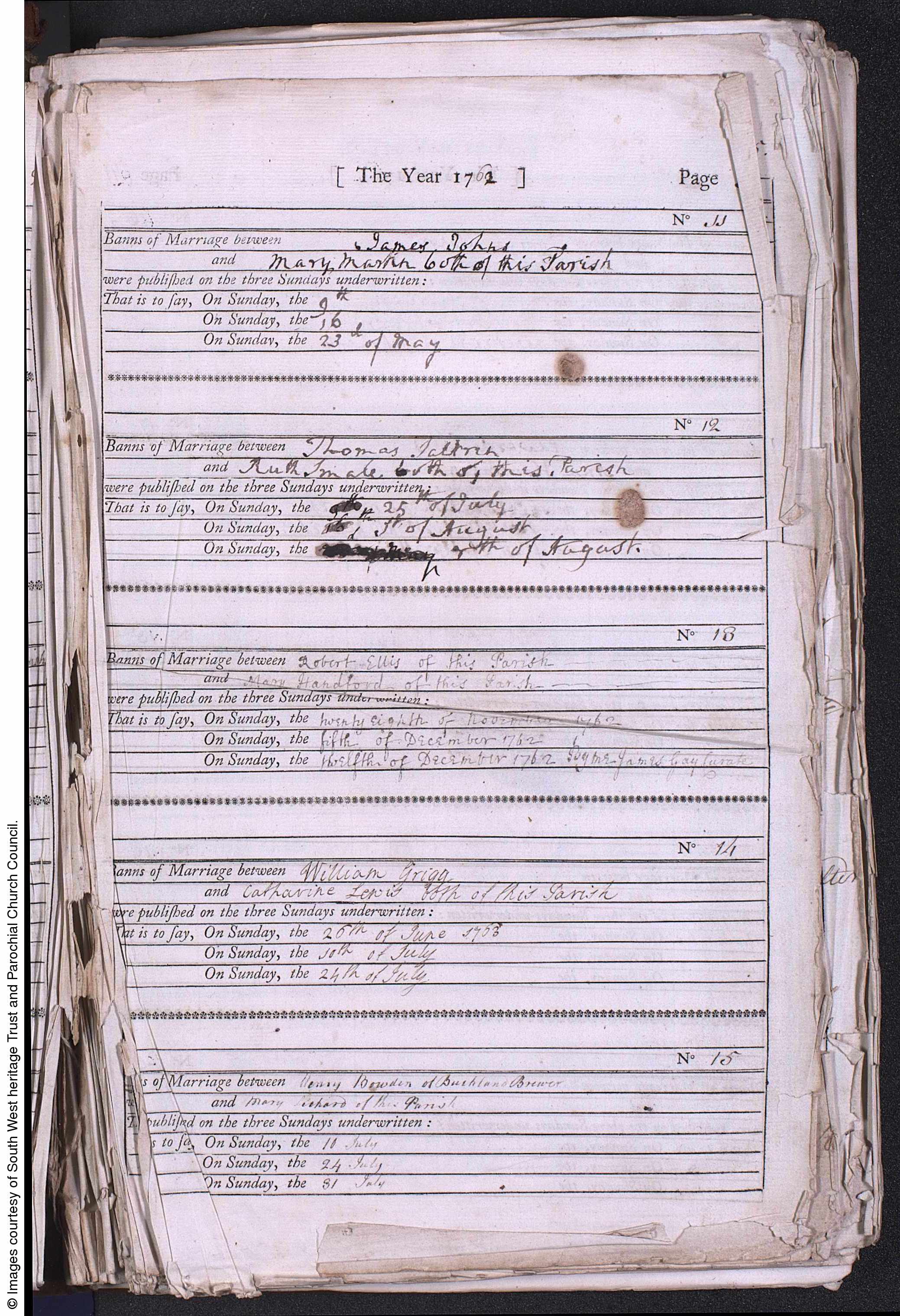1. They had marriage banns published on 26 June 1763 in Monkleigh, , Devonshire, England.