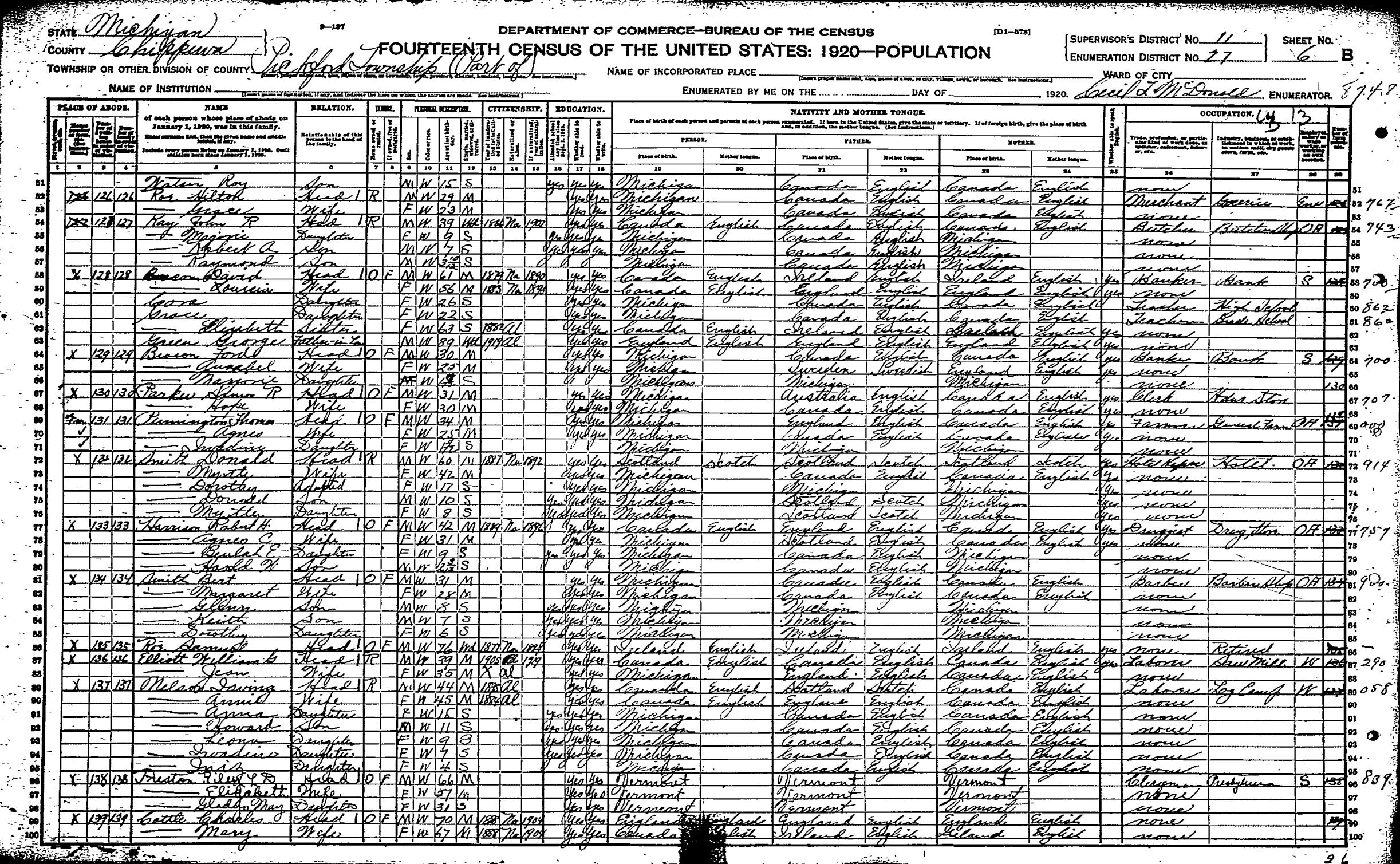 1. She appeared in the household of Thomas John PENNINGTON in the 1920 United States census on 2 January 1920 in Pickford, Chippewa, Michigan, United States. Agnes married Thomas John PENNINGTON, son of James PENNINGTON and Margaret WATSON, on 18 July 1917 in Pickford, Chippewa, Michigan, United States.321 (Thomas John PENNINGTON was born on 8 January 1886 in , Chippewa, Michigan, United States 314,322 and died on 16 October 1979.) Marriage Notes: Reverend J. W. Bond, Minister presided over the ceremony. Witnesses were Matilda Pennington and Samuel Watson. |