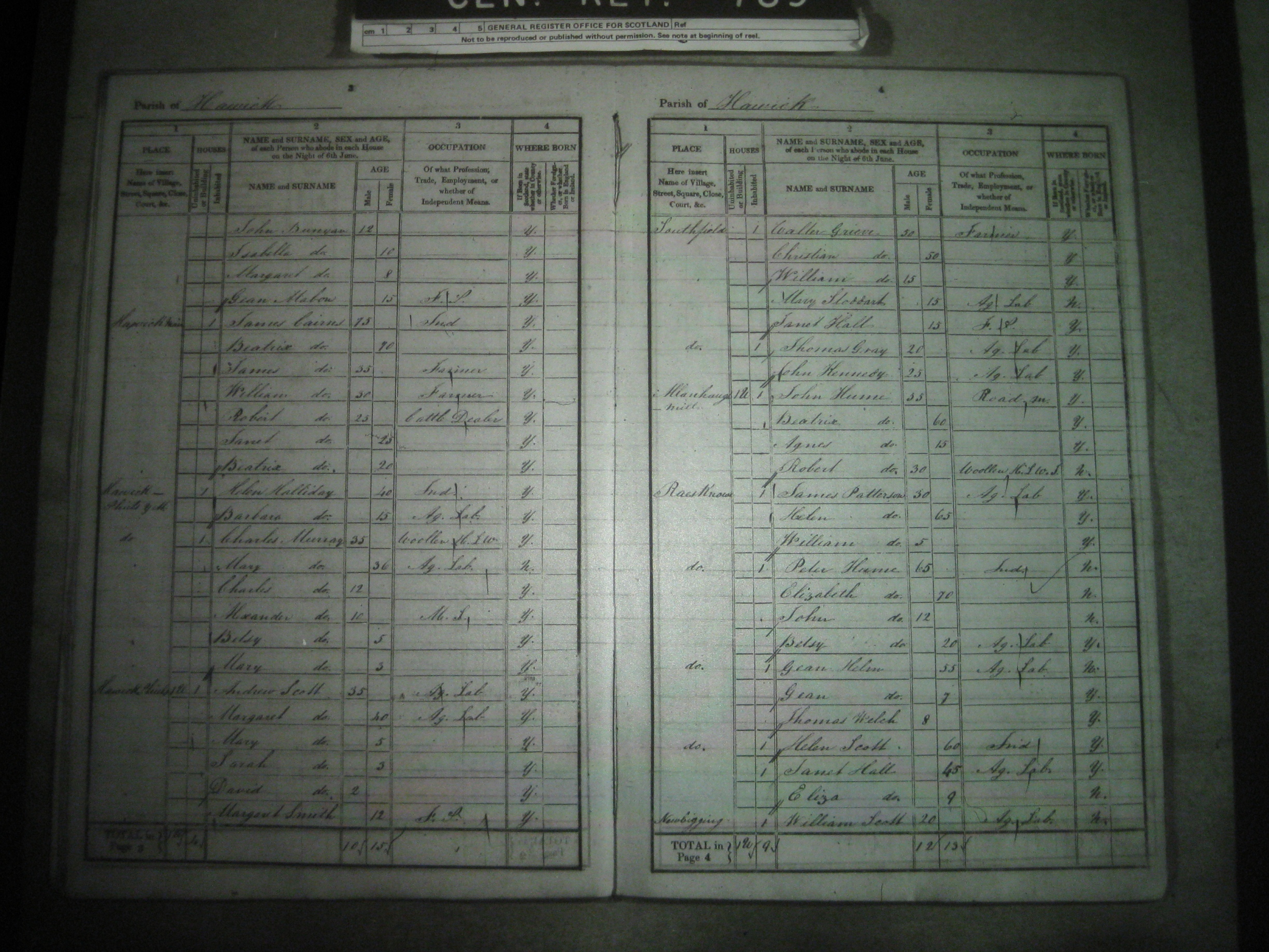 3. William was an occupant at the residence of Walter John GRIEVE on 6 June 1841 in Hawick, Roxburghshire, Scottish Borders, Scotland: Southfield Farmhouse.