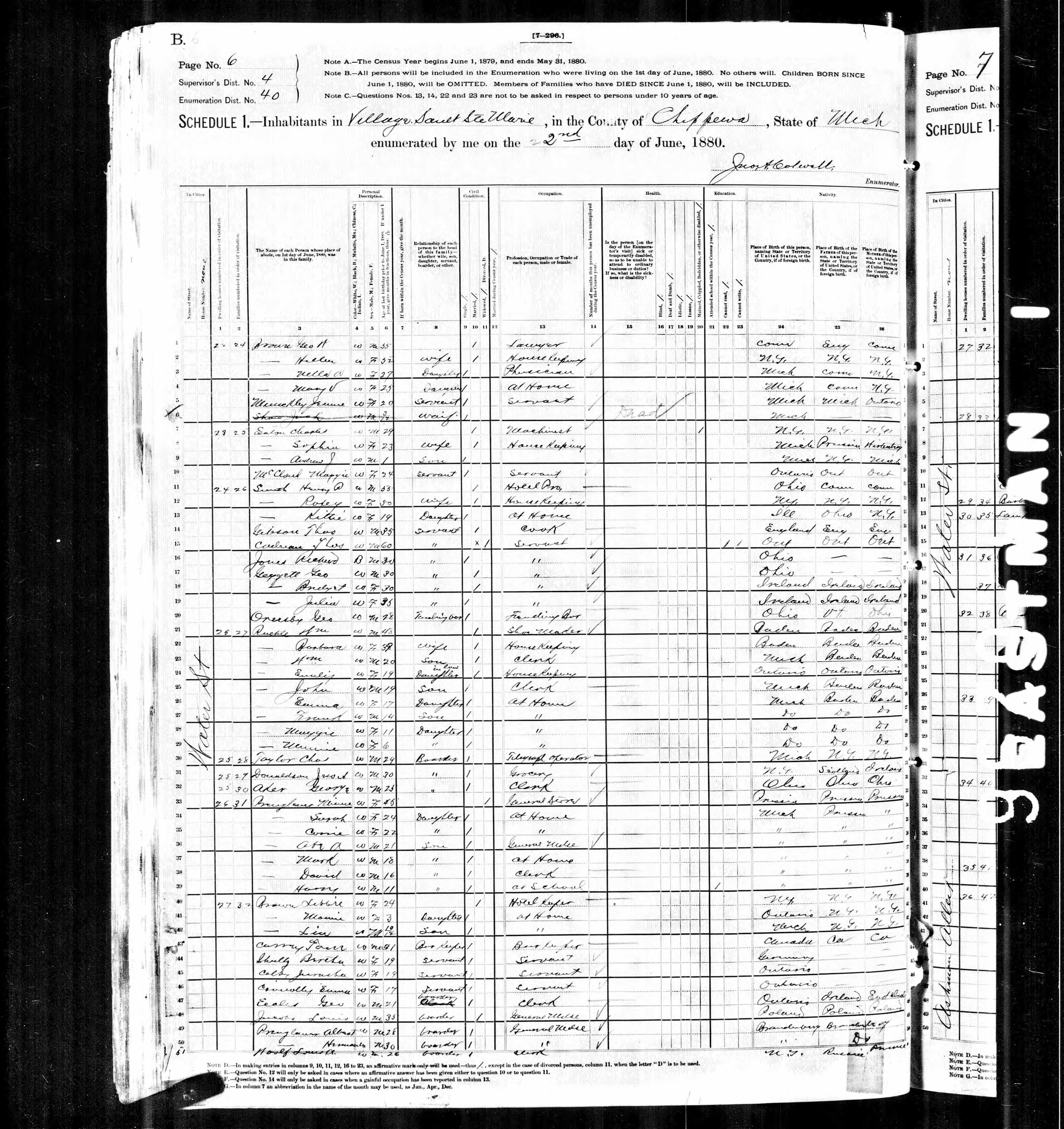 2. Margaret was an occupant at the residence of Wilhelm RUEHLE on 2 June 1880 in Sault Ste. Marie, Chippewa, Michigan, United States: Water Street. 131 131