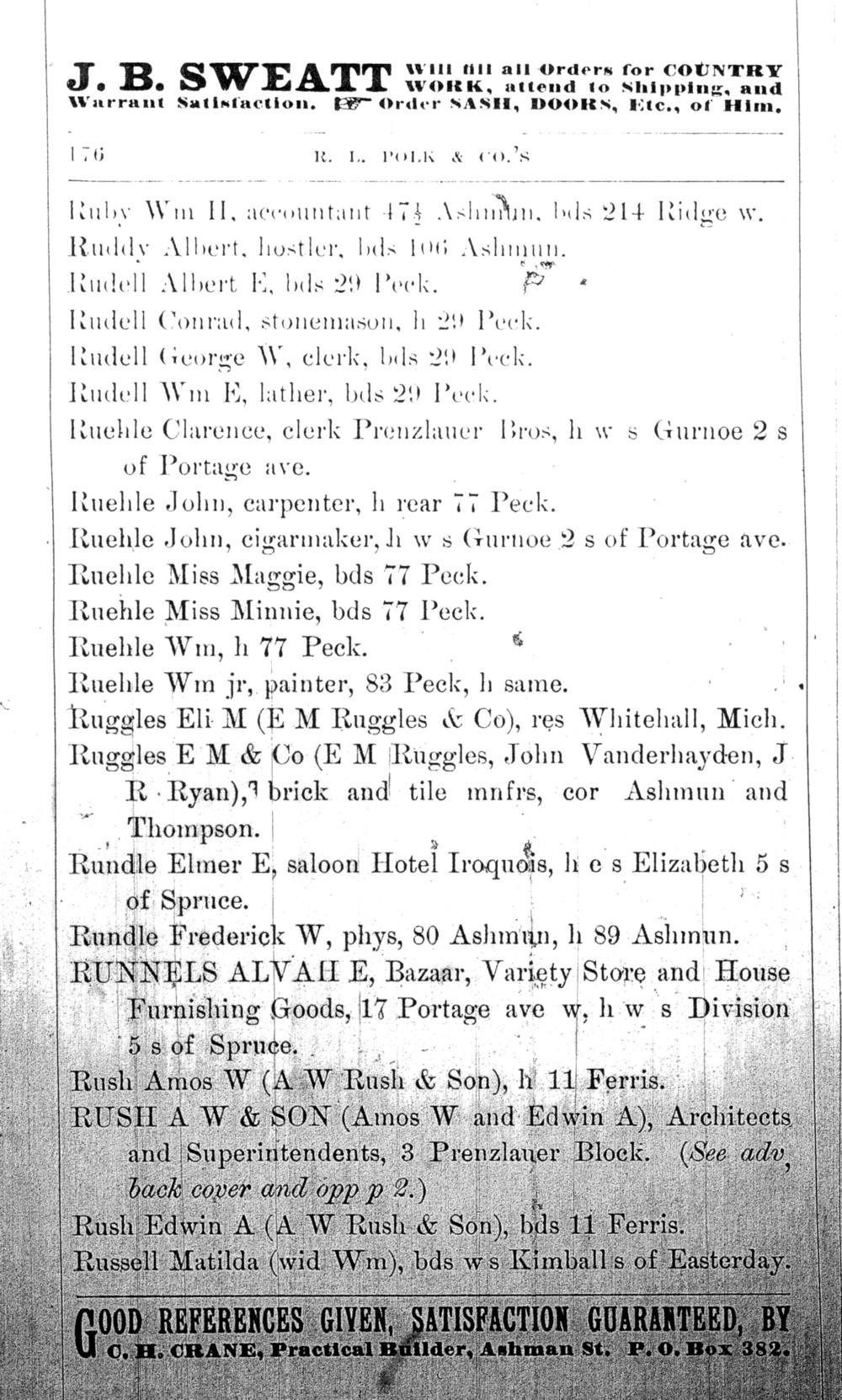 3. Margaret L. Ruehle appeared in Sault Ste. Marie, Chippewa, Michigan, United States City Directory for 1889