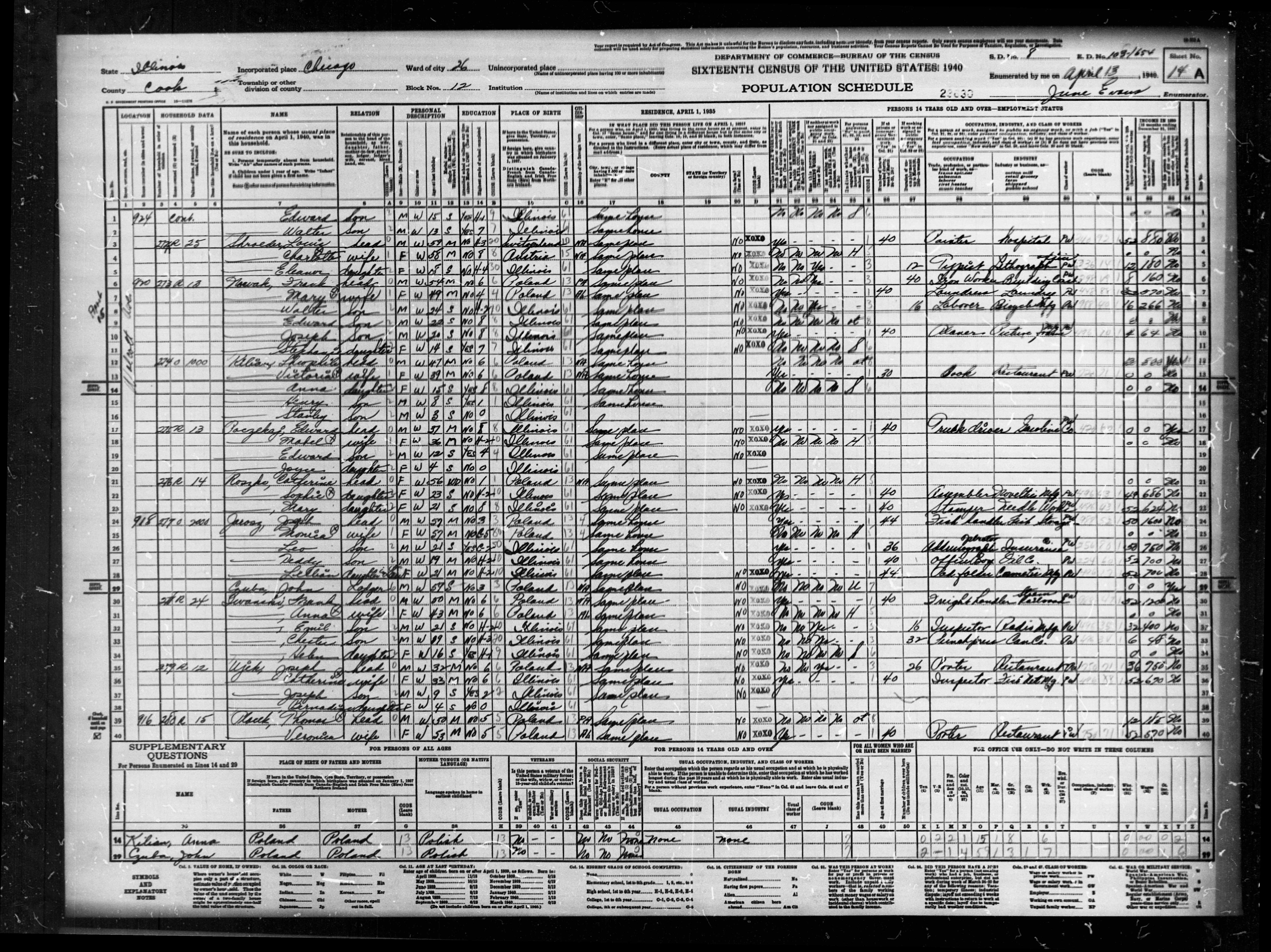4. Census: 1940 United States, on 13 April 1940, in Chicago, Cook, Illinois, United States. This event was shared from Teofil KILIAN who also shared it with Anna KILIAN (1924-), Henry J. KILIAN (1932-2011), Stanley Marion KILIAN (1937-), and Victoria SIVEK (1900-1971).