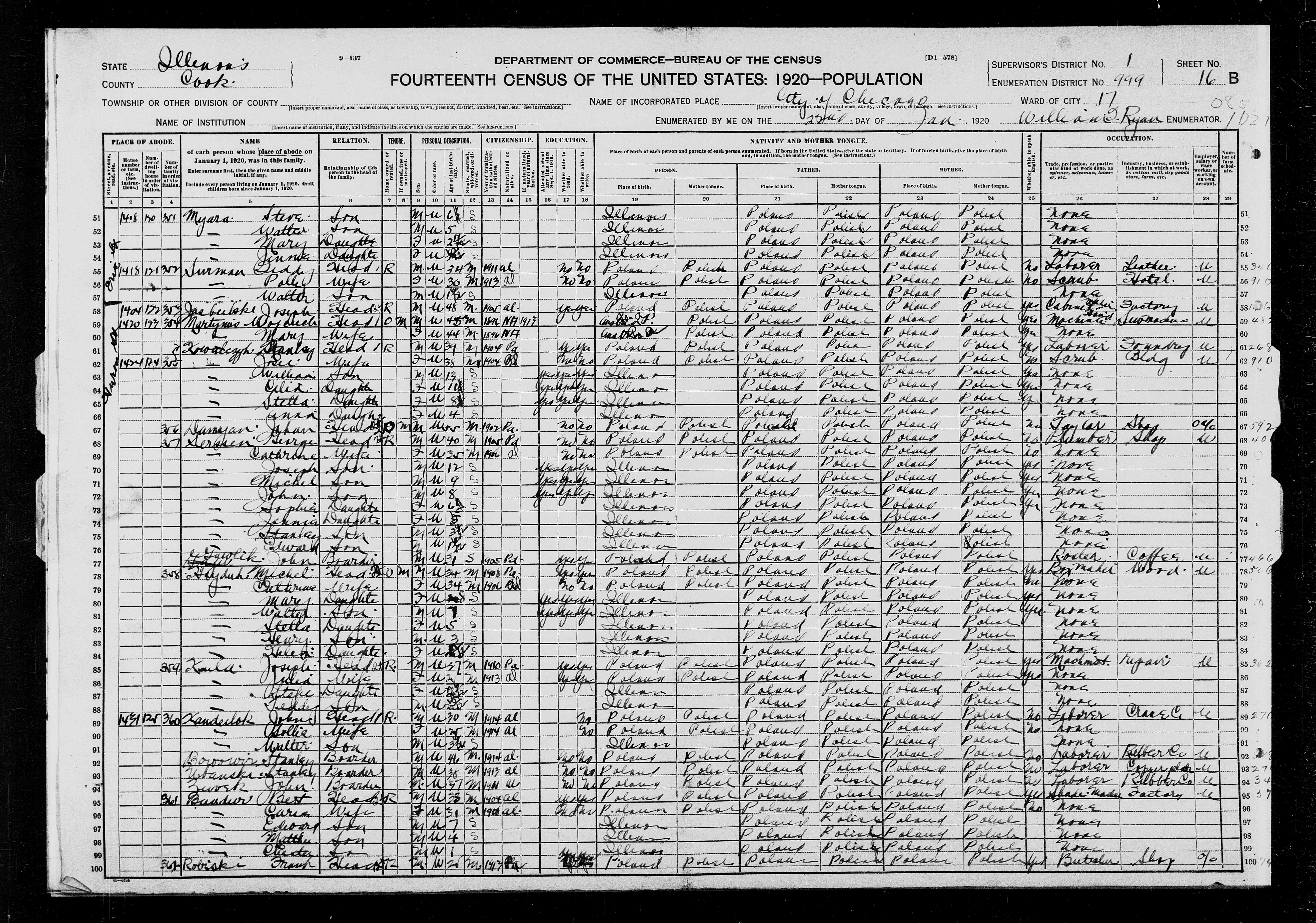 1. He appeared on the 1920 United States census on 22 January 1920 in Chicago, Cook, Illinois, United States.