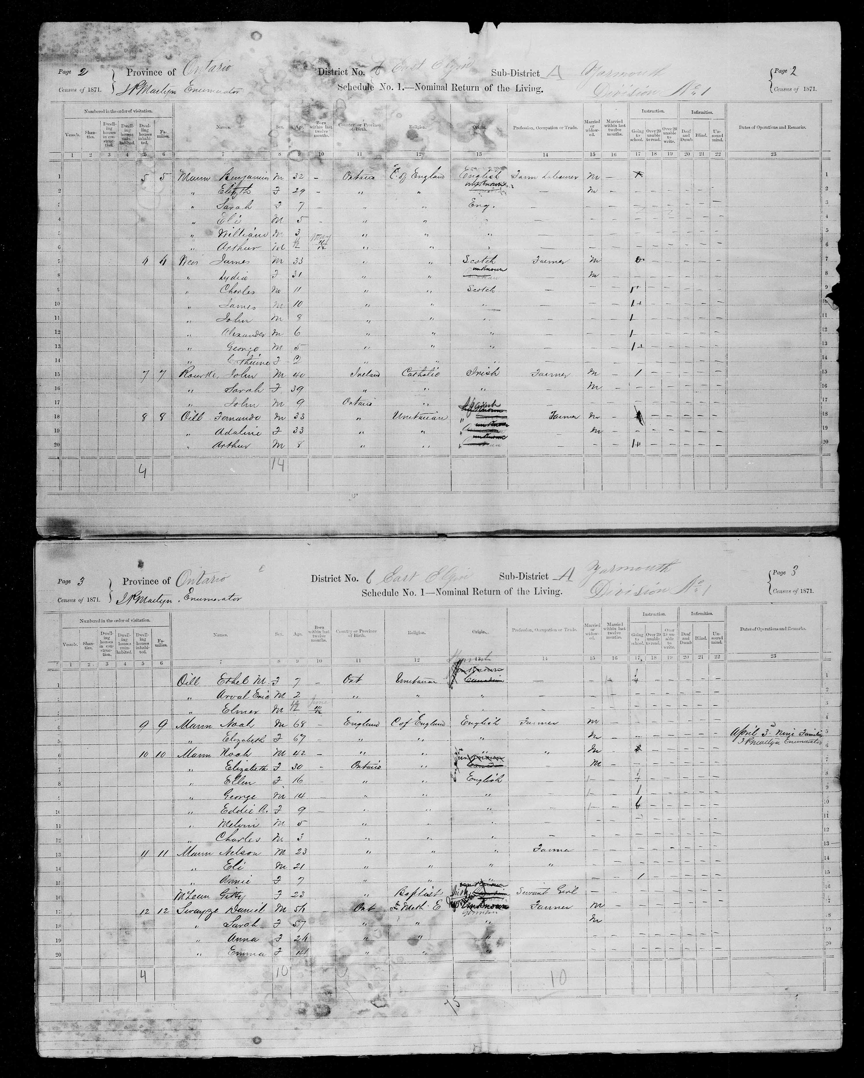 1. He appeared in the household of Benjamin MANN in the 1871 Canada census on 2 April 1871 in Yarmouth, Elgin, Ontario, Canada. J.P. Martyn was the census Enumerator.