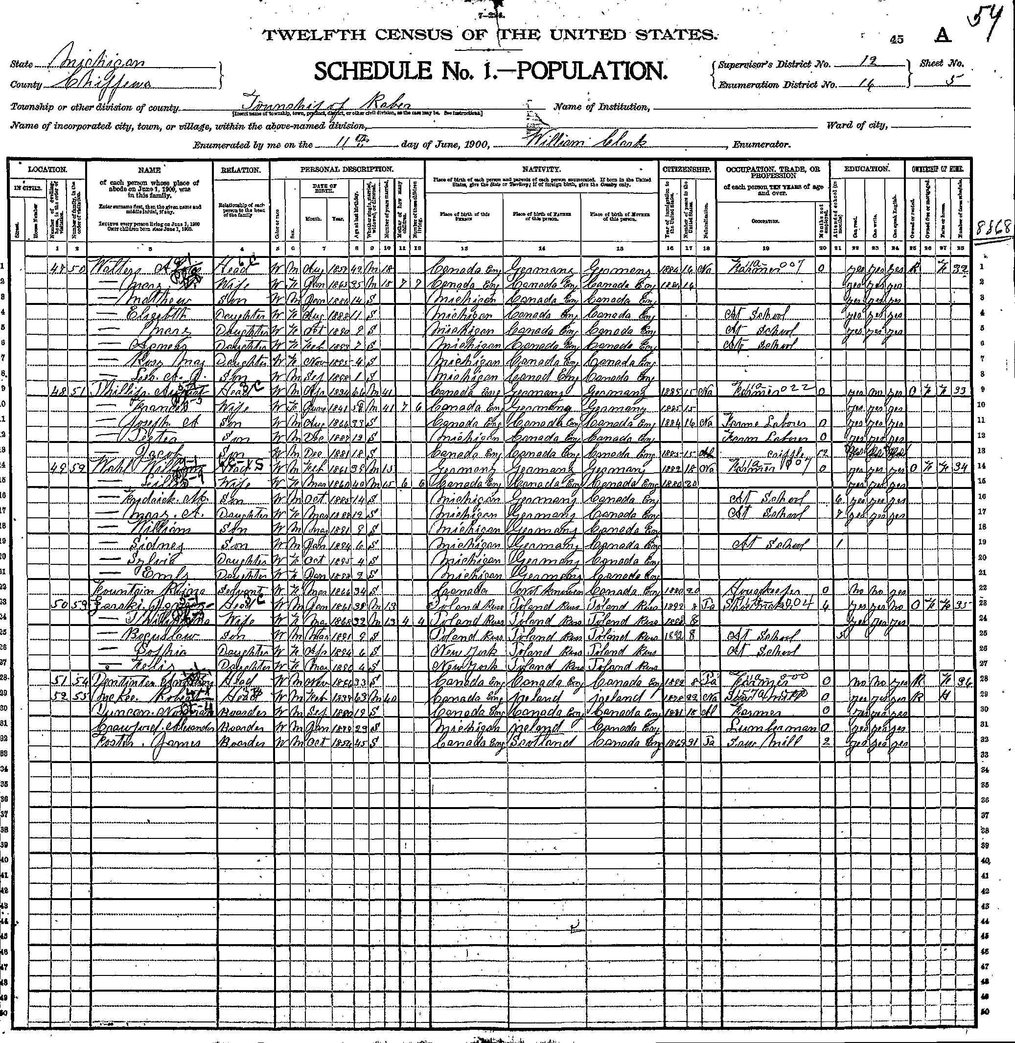 1. He appeared in the household of William WAHL in the 1900 United States census on 11 June 1900 in Raber, Chippewa, Michigan, United States. 1900_USA_MI_Chippewa_12_16_05a.