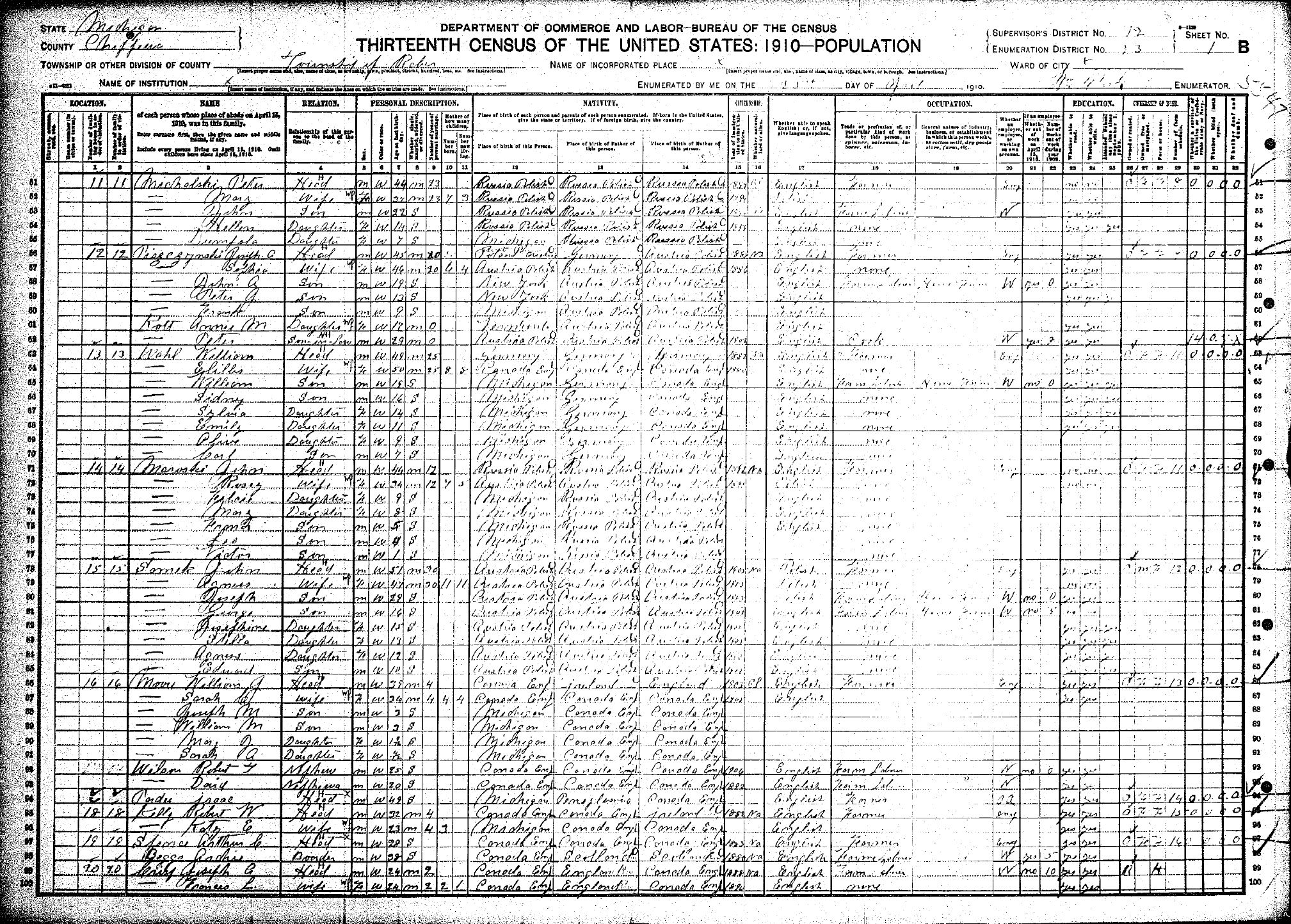 2. William appeared in the household of William WAHL in the 1910 United States census on 23 April 1910 in Raber, Chippewa, Michigan, United States. 366 366 1910_USA_MI_Chippewa_12_23_01b_Raber.