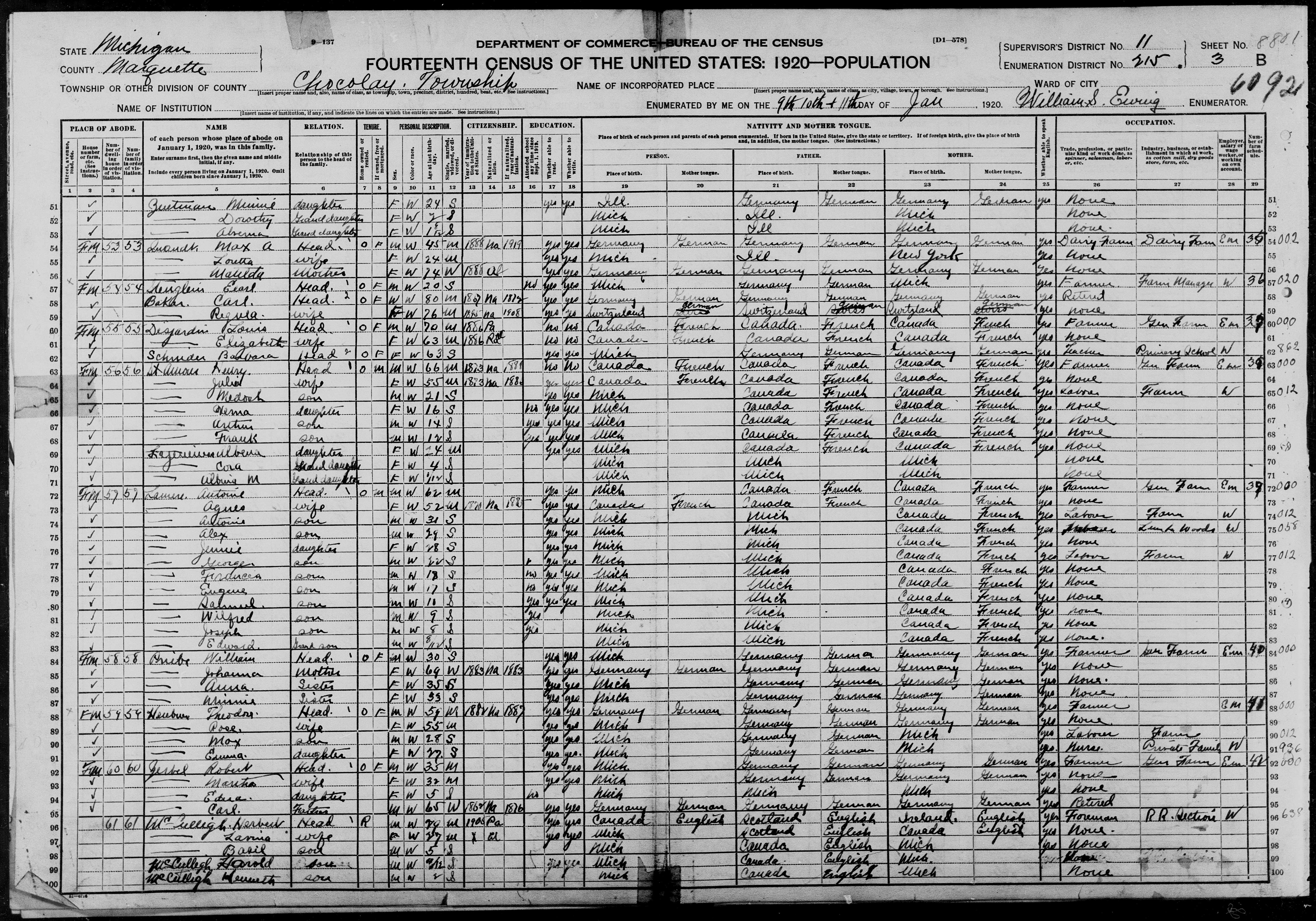 1. Basil appeared in the household of Herbert Lester McCULLIGH in the 1920 United States census on 9 January 1920 in Marquette, Marquette, Michigan, United States.